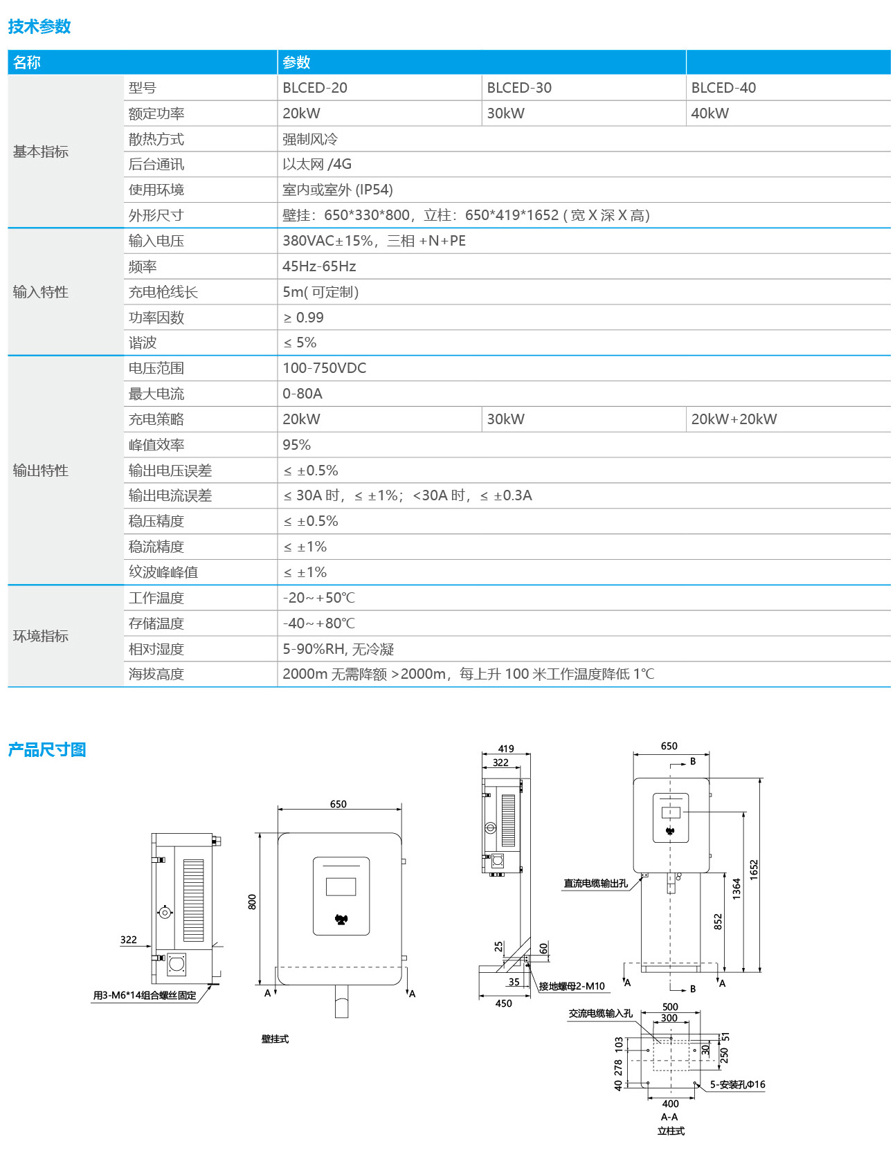 20-30-40kW一体式直流立柱/壁挂式充电桩